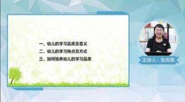 本课程主要围绕如何把握幼儿的学习品质及意义、怎么认知幼儿的学习特点及方式、如何培养幼儿的学习品质三个大问题讲述,其重点聚焦幼儿教师通过了解幼儿学习品质特点来正确培养幼儿的学习品质,为未来学习能力与适应社会发展奠定良好基础。