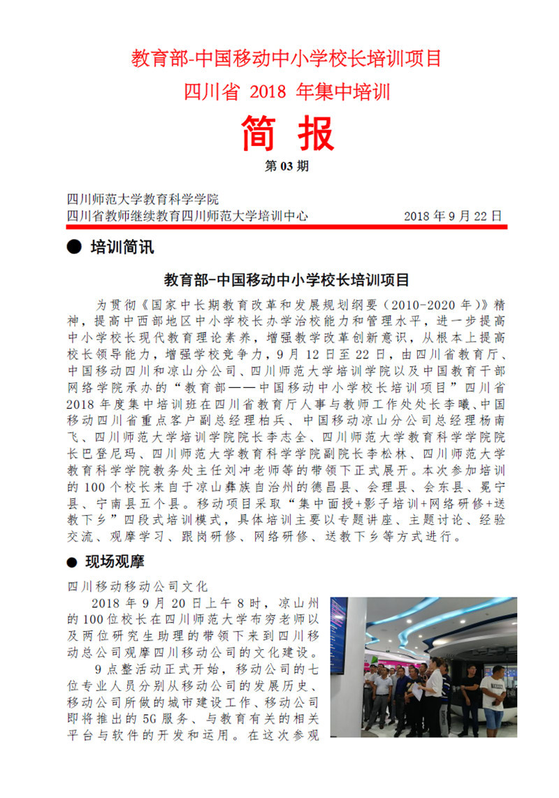 【四川】教育部——中国移动中小学校长培训项目简报(第三期)