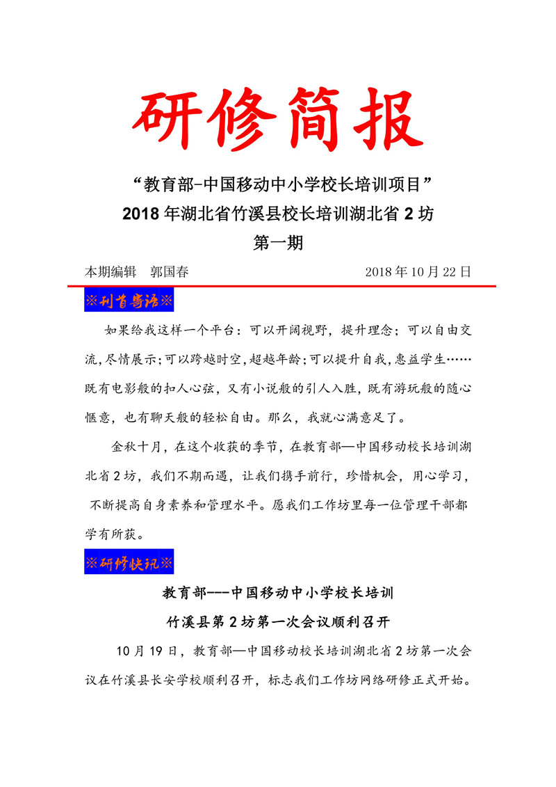 【湖北】教育部——中国移动中小学校长培训项目-湖北2坊研修简报第一期