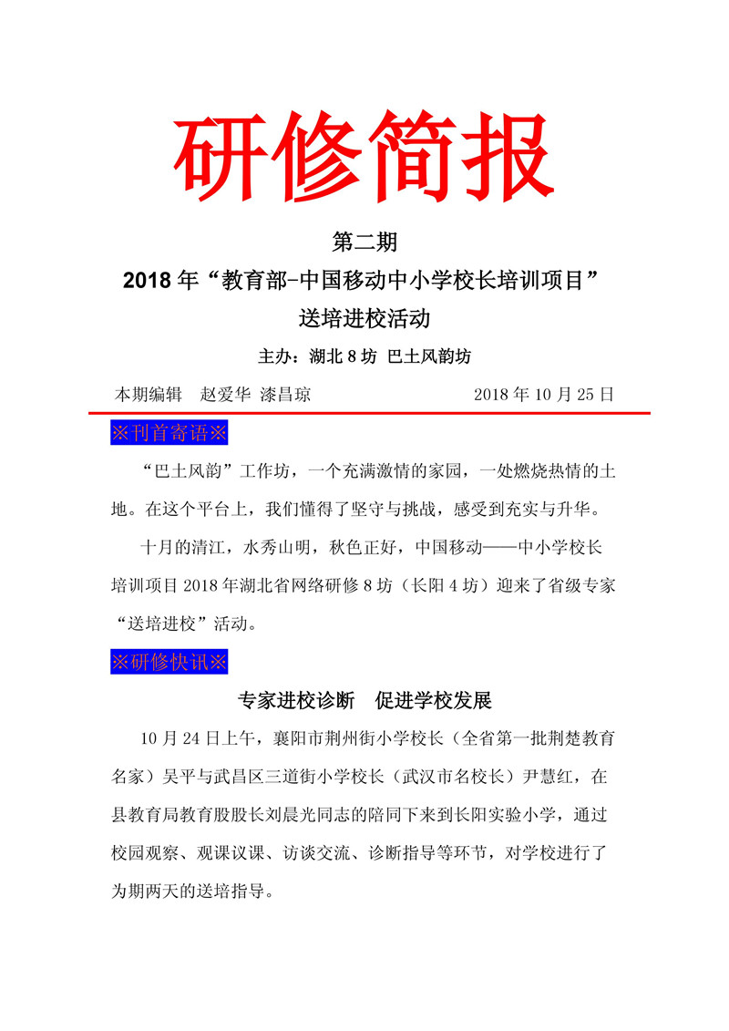 【湖北】教育部——中国移动中小学校长培训项目-湖北8坊研修简报第二期