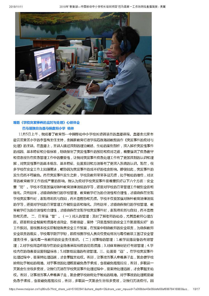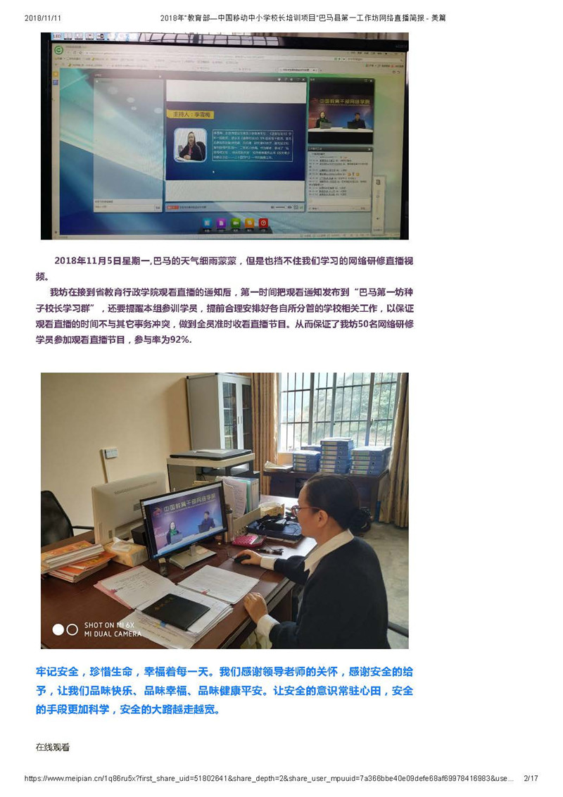 【广西直播活动简报】教育部——中国移动中小学校长培训项目-广西壮族自治区第1坊第一期简报(闭凤娟)