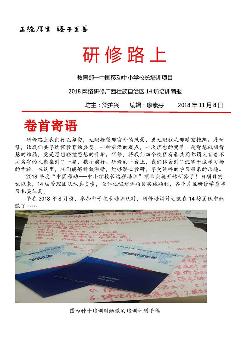 【广西直播活动简报】教育部——中国移动中小学校长培训项目-广西壮族自治区第14坊第一期简报(梁护兴)