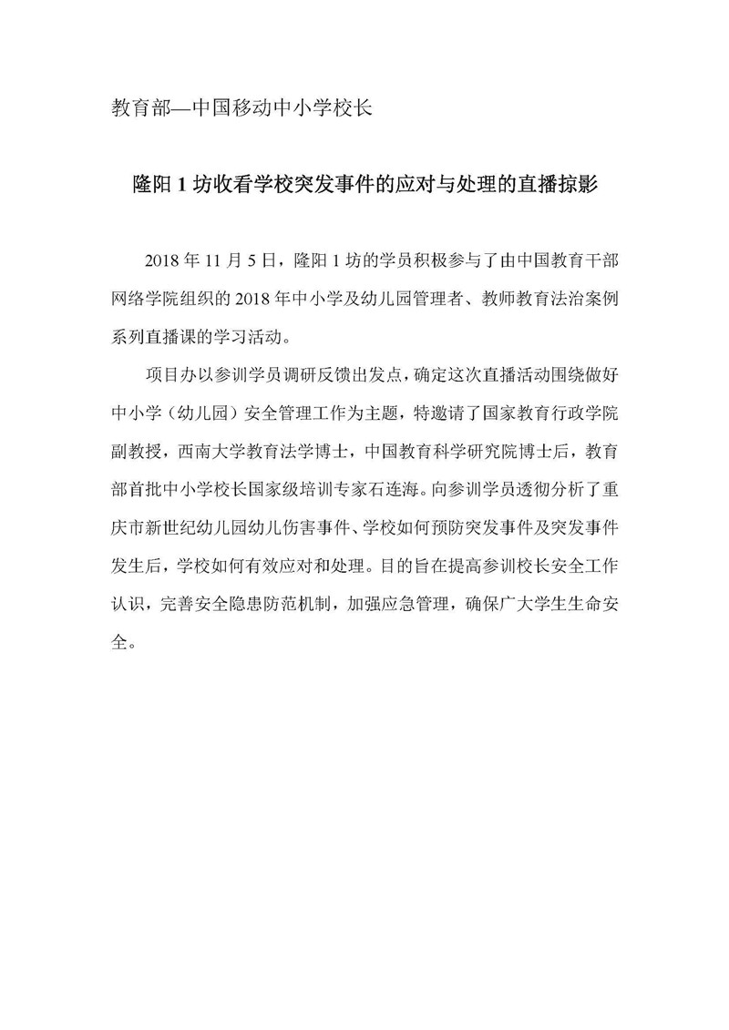 【云南直播活动简报】教育部——中国移动中小学校长培训项目-隆阳1坊收看学校突发事件的应对与处理的直播掠影