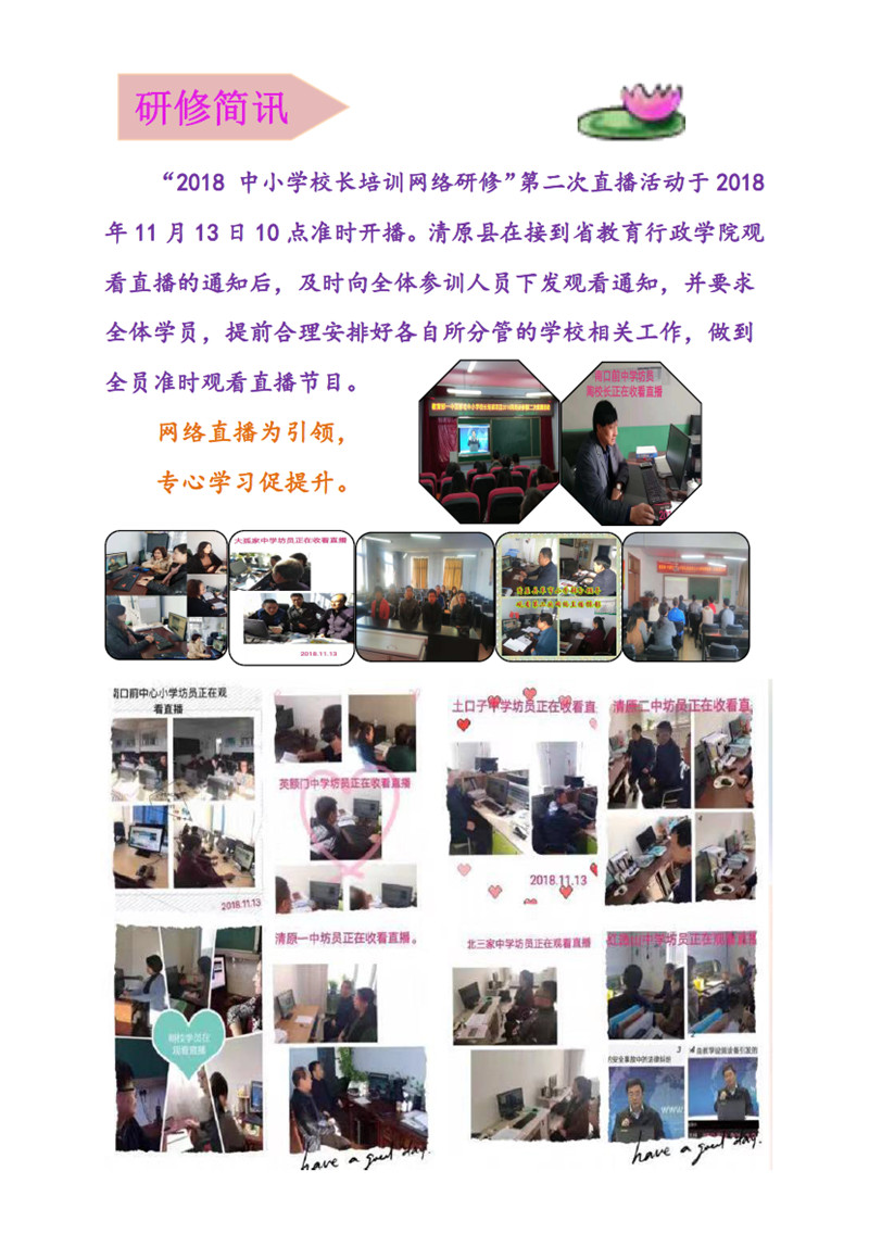 【辽宁第二期直播活动简报】教育部——中国移动中小学校长培训项目-清原县二次直播简报