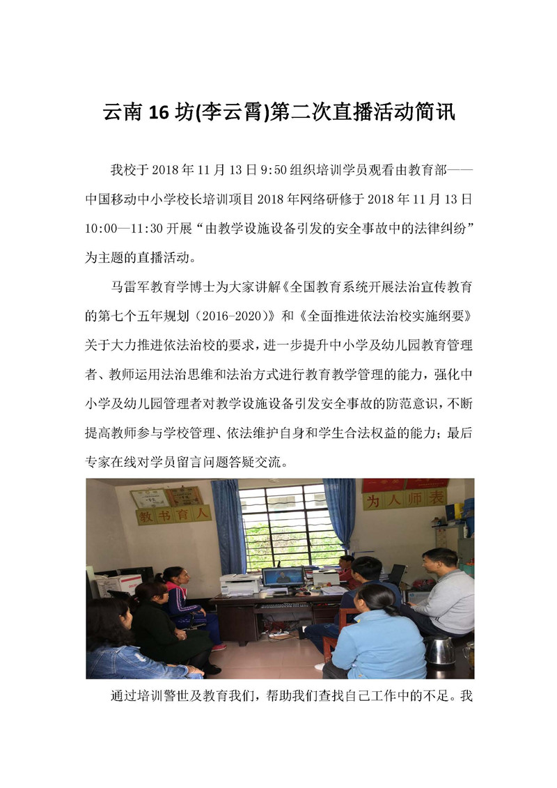 【云南第二期直播活动简报】教育部——中国移动中小学校长培训项目-云南16坊(李云霄)直播(第二次)活动简讯
