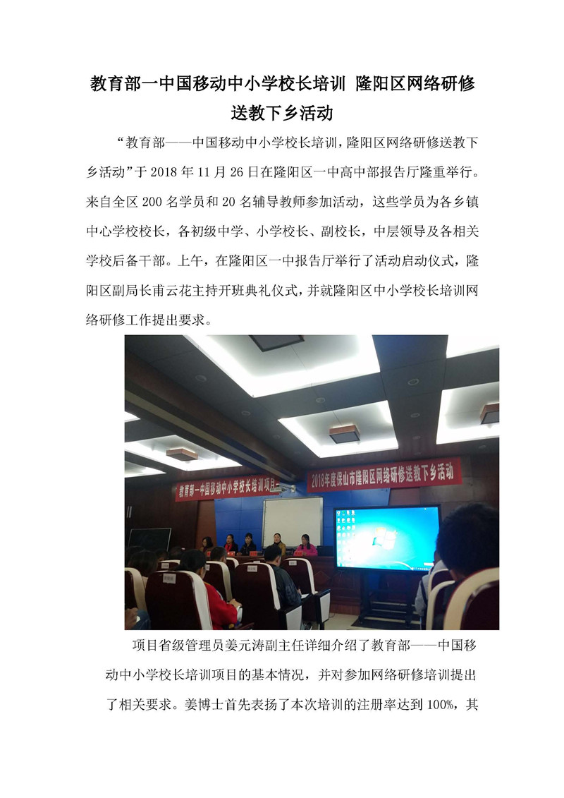 【云南】教育部——中国移动中小学校长培训项目-隆阳区网络研修送教下乡活动 云南1坊简报(马兴春)