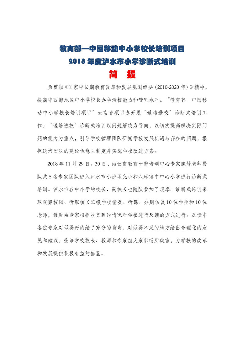 【云南】教育部——中国移动中小学校长培训项目-2018年度泸水市小学诊断培训简报